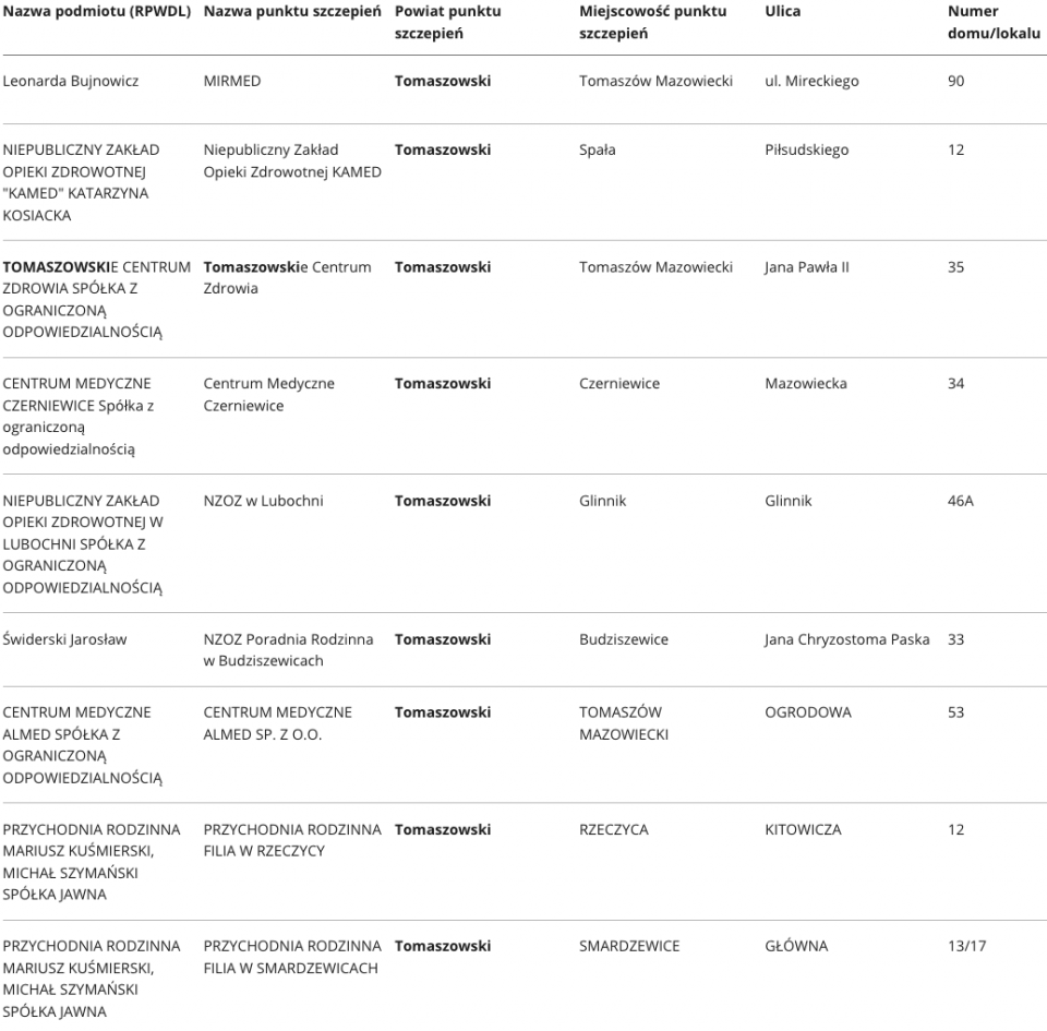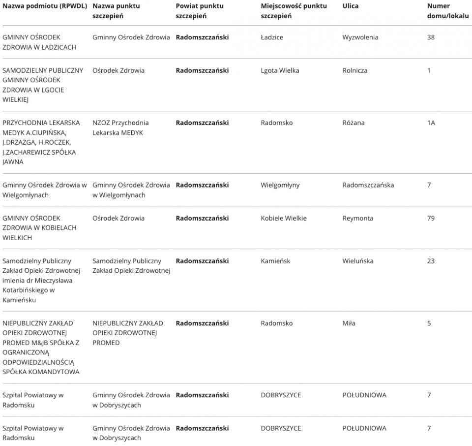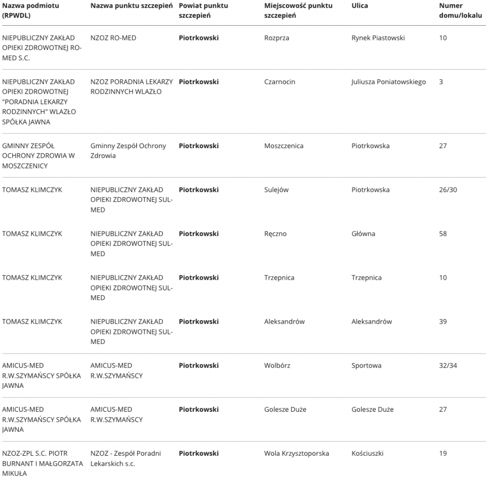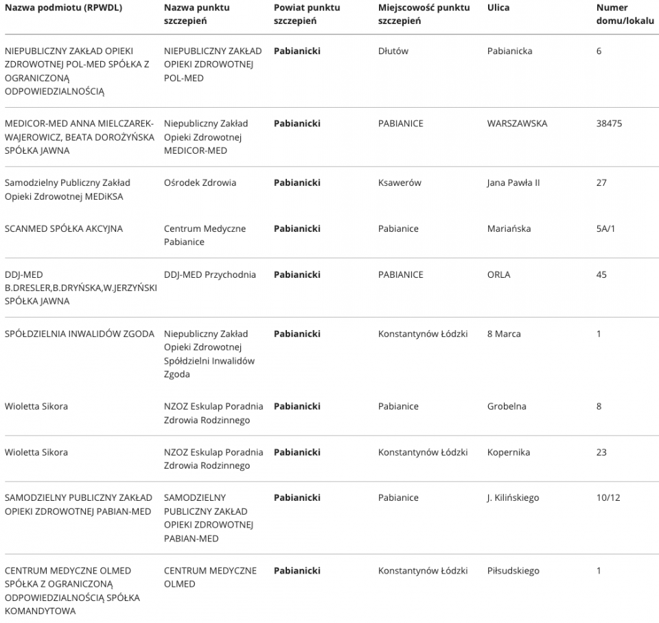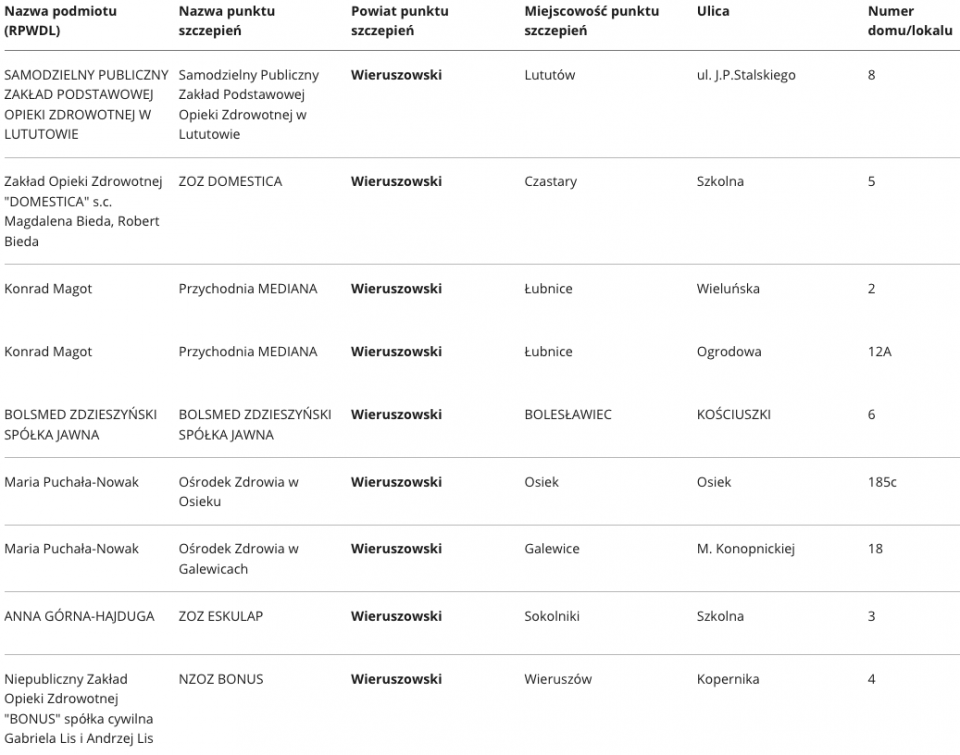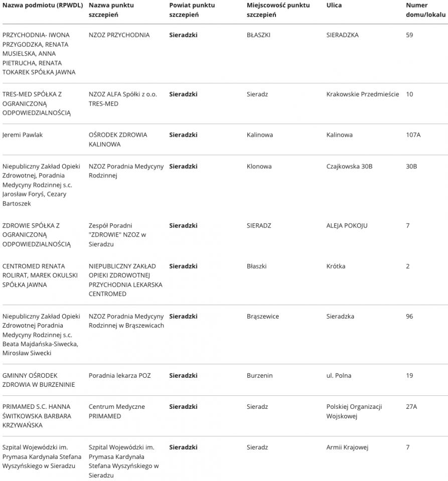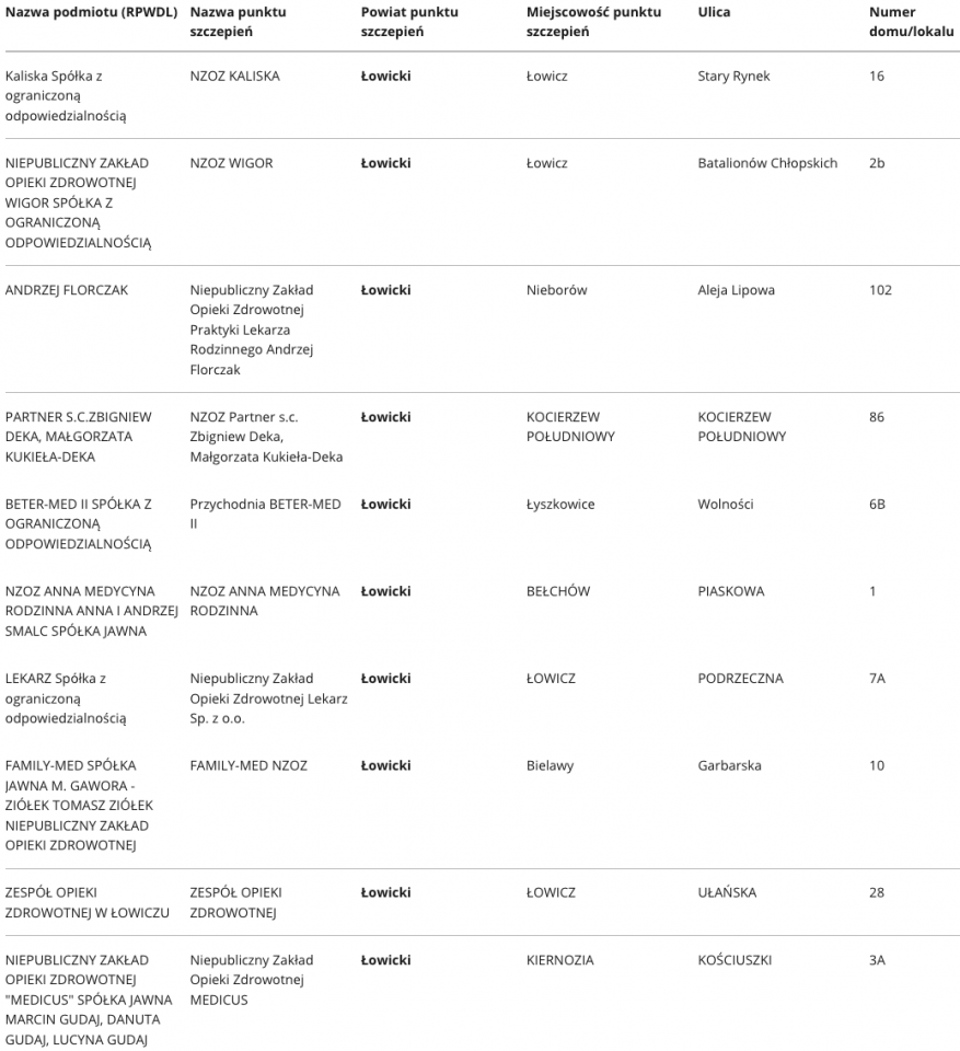 W województwie łódzkim aktualnie zaakceptowano ponad 400 punktów, w których odbywać się będą szczepienia na Covid-19. Specjalnie dla Państwa prezentujemy wykaz punktów, z podziałem na poszczególne powiaty.