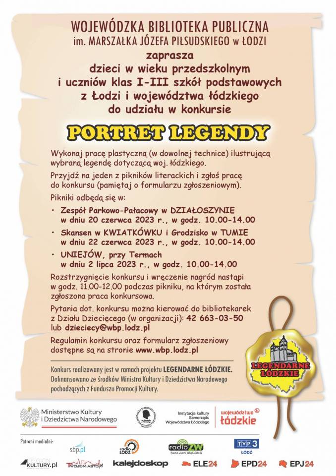 Zadaniem uczestnika konkursu jest wykonanie pracy plastycznej ilustrującej wybraną legendę dotyczącą województwa łódzkiego.