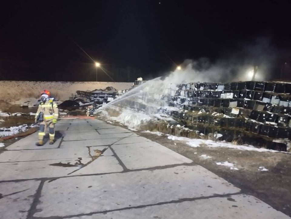 Duży pożar na składowisku w powiecie radomszczańskim. Płonie hałda ze zbiornikami typu "mauser". Na miejscu pracuje kilkanaście zastępów straży pożarnej, specjalistyczna grupa chemiczno - ekologiczna i dronowa. Jak przekazuję PSP w Radomsku trwa walka o to, by ogień nie rozprzestrzenił się na kolejne fragmenty składowiska.