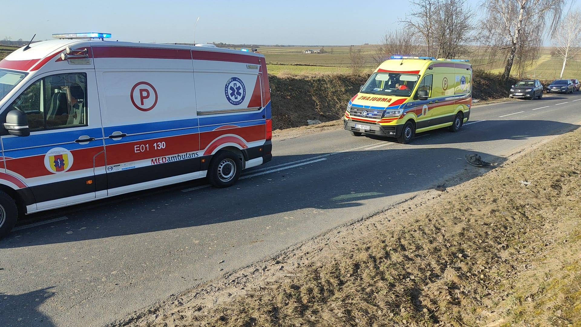 Najpoważniej poszkodowany został 47-letni pasażer jednego z pojazdów, który został przetransportowany do szpitala śmigłowcem Lotniczego Pogotowia Ratunkowego. Pozostałe osoby - dwaj kierujący oraz pasażerowie w wieku 36 i 41 lat - były badane na miejscu przez zespoły ratownictwa medycznego. Jak przekazują strażacy wszscy poszkodowani w momencie działań ratowniczych byli przytomni.