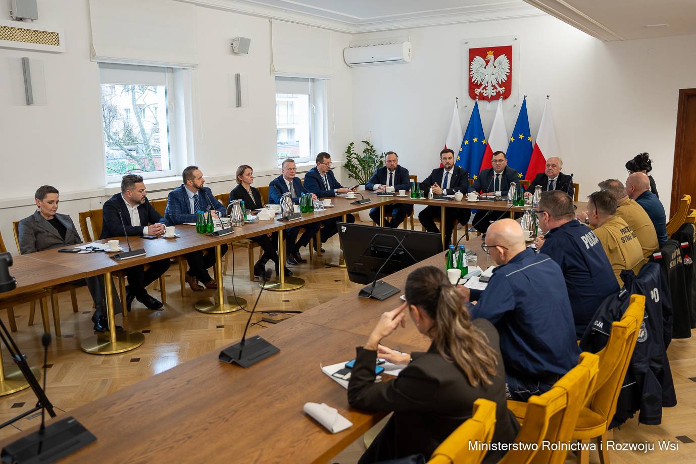 W spotkaniu wzięli też udział sekretarz stanu Jacek Czerniak, podsekretarz stanu Adam Nowak i główny lekarz weterynarii Paweł Meyer, a także przedstawiciele Polskiego Związku Łowieckiego oraz Departamentu Bezpieczeństwa Żywności i Weterynarii i Departamentu Bezpieczeństwa MRiRW.